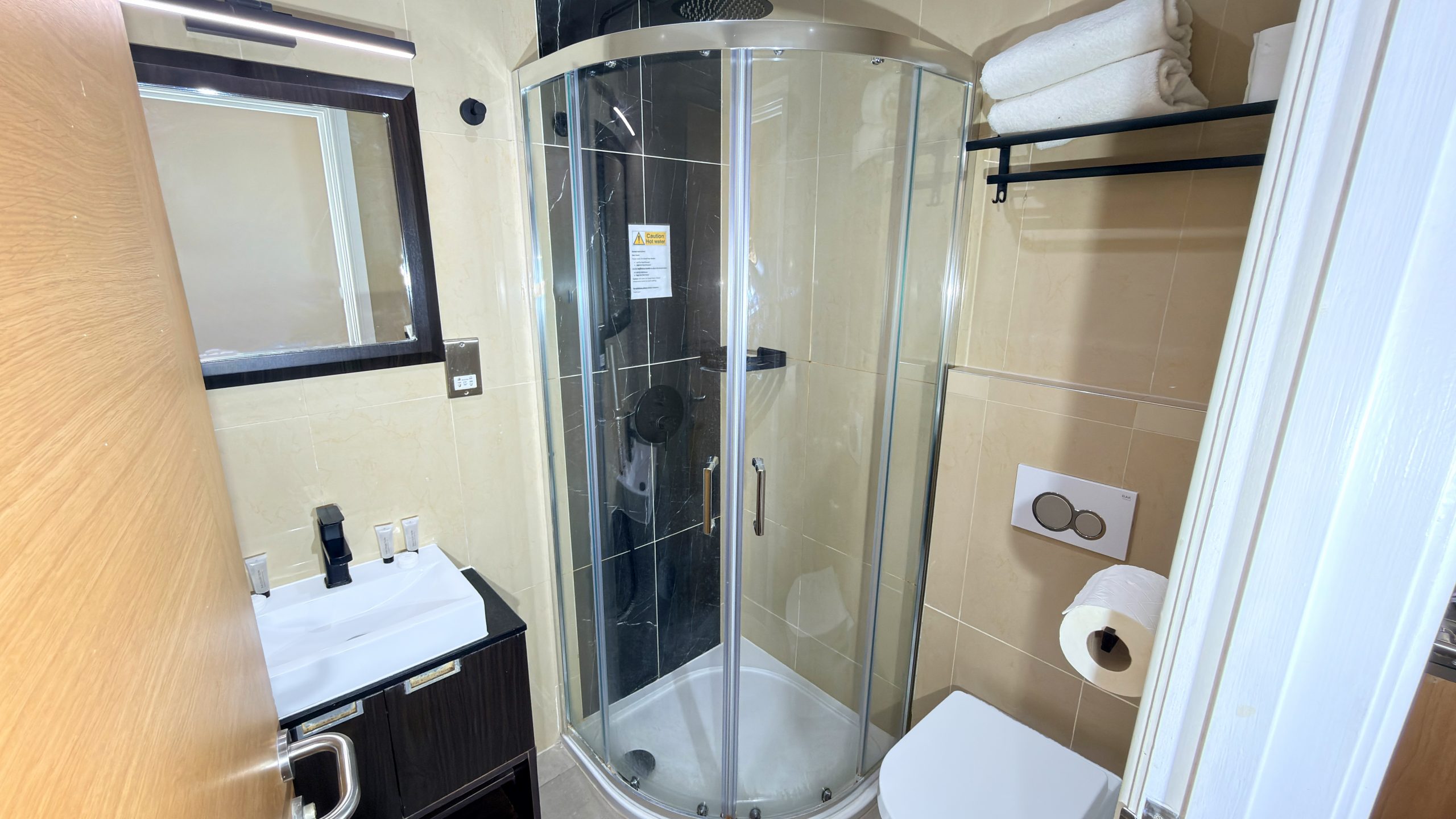 A light palette of earthy tones and shimmering platinum create a sanctuary that is at once, warm, serene and inviting. Wrap-around, floor-to-ceiling windows unveil breathtaking views of the city and the Saigon River. A sensual, marble-clad bath with separate shower and deep-soaking, window-side tub beckons for some serious personal time.